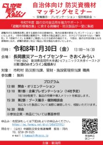 自治体向け 防災資機材マッチングセミナー~展示・プレゼンテーション・個別相談会~