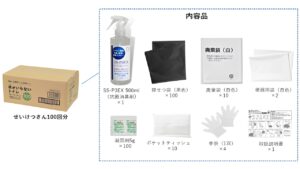 災害時は避難所等で感染が発生しやすくなります。二次災害防止のためには、適切な汚物・トイレ処理、汚染しやすいところのこまめな清掃による感染予防対策、トイレなどの臭いによるストレス対策が重要です。せいけつさんは、災害時の感染症などにより二次災害のための抗菌消臭剤「SS-P3EX」と凝固剤「バイオボンド」の入ったトイレ処理セットです。