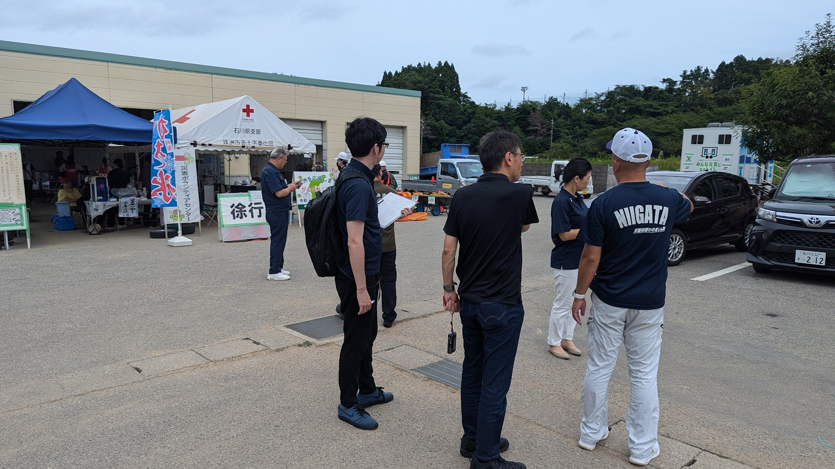 ホリカフーズ株式会社 目黒氏、有限会社鈴文 鈴木氏、新潟県産業政策課 白川氏、(公社)中越防災安全推進機構 諸橋、河内